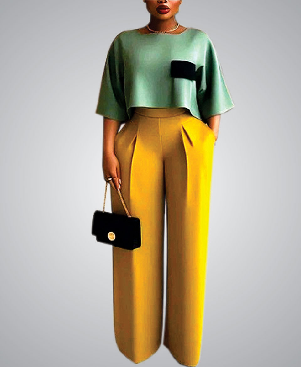 Women Crepe Suit |  Dark GreenWomen Ankara Gown | Gold Pattern